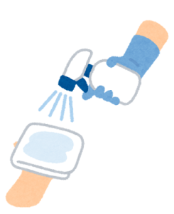 清掃と言っても、布巾を使った水拭きではなく、消毒用エタノールを主成分とした台所用のアルコールスプレーを使用することをお勧めします。